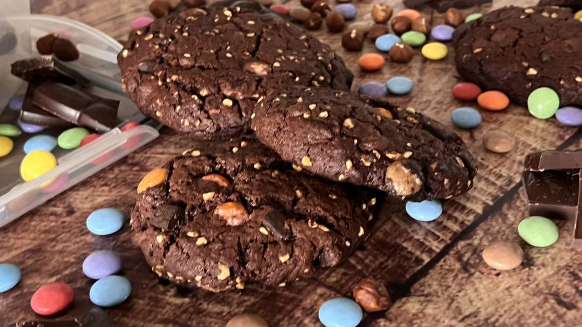 Diese Cookies sind mehr als nur ein Keks – sie sind ein Stimmungsaufheller in Backform! Egal, ob du sie für einen Kindergeburtstag, den Kaffeetisch oder einfach für dich selbst backst – sie machen immer gute Laune. Die bunten Smarties bringen Farbe auf den Teller, die Haselnüsse sorgen für Crunch, und die Kombination aus dunkler Schokolade und Kakao im Teig macht sie angenehm intensiv, aber nicht zu süß.